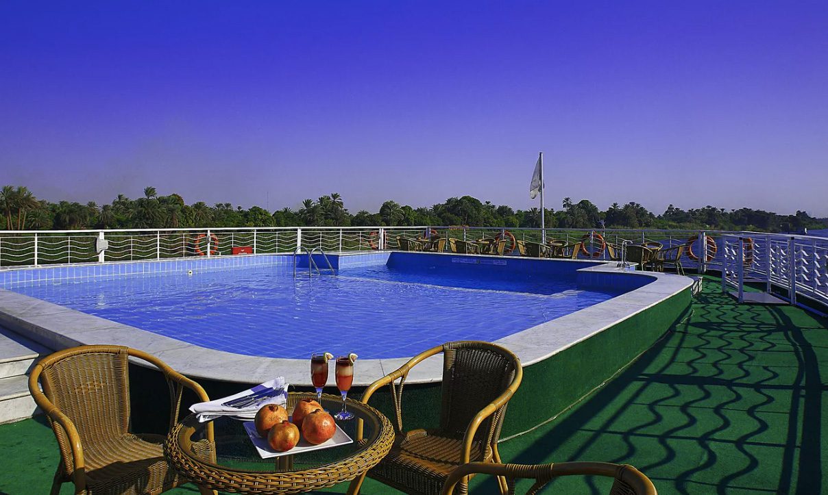 Sail past scenic landscapes while discovering iconic landmarks such as Karnak Temple, the Valley of the Kings, Edfu Temple, and Philae Temple. Onboard, enjoy well-appointed cabins with panoramic views, delicious international and Egyptian cuisine, and a variety of entertainment and leisure facilities including a sun deck and swimming pool.