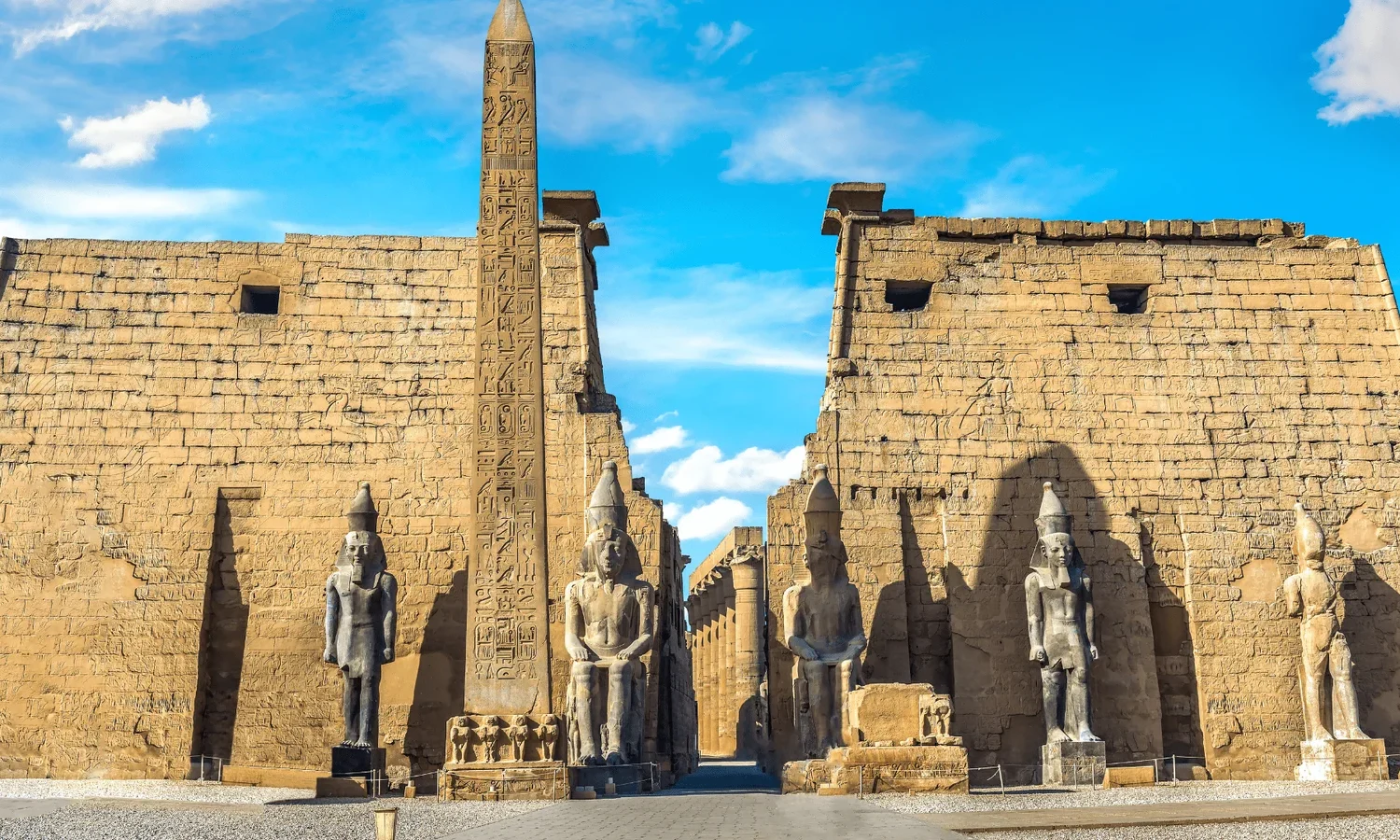 Visit the magnificent Temple of Hatshepsut, a striking mortuary temple built for Egypt’s most powerful female pharaoh, seamlessly rising from the cliffs of Deir el-Bahari. Nearby stand the imposing Colossi of Memnon, silent guardians that have watched over the Theban necropolis for millennia.